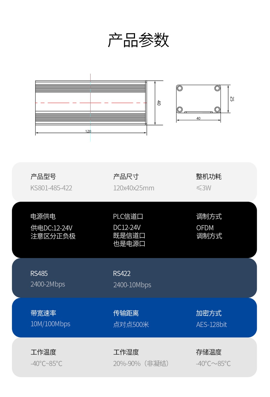 KS801 工業電力貓寬帶電力載波器485/422串口傳輸定制款