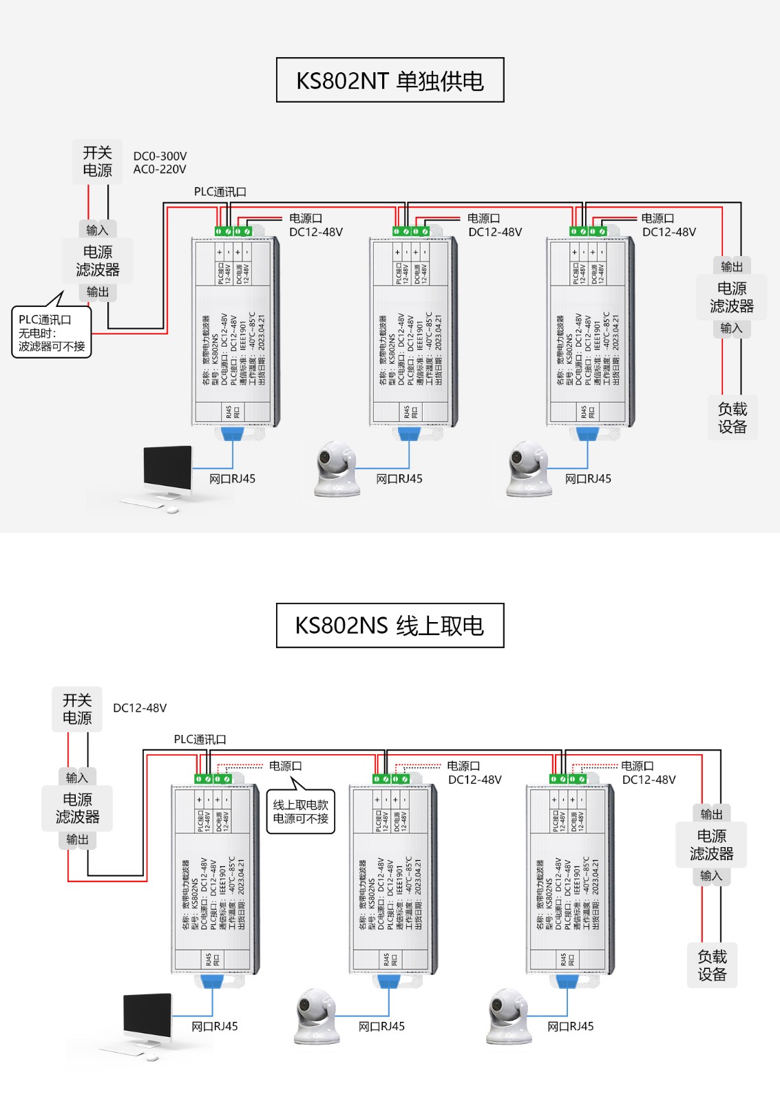 KS802N機器人專用款小體積100M帶寬電力載波器數據透傳
